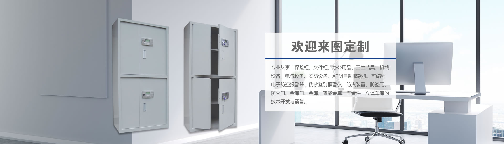 ? 專業從事:保險柜、文件柜、辦公用品、衛生潔具、機械設備、電氣設備、安防設備、ATM自動取款機、可編程電子防盜報警器、偽鈔鑒別報警儀、防火裝置、防盜門、防火門、金庫門、金庫、智能金庫、五金件、立體車庫的技術開發與銷售